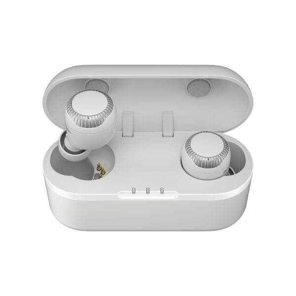 Su cuerpo redondeado se adapta cómodamente a la oreja, incluso en usos prolongados. El diseño del ángulo y largo de los audífonos está basado en una amplia cantidad de datos 3D de oídos.